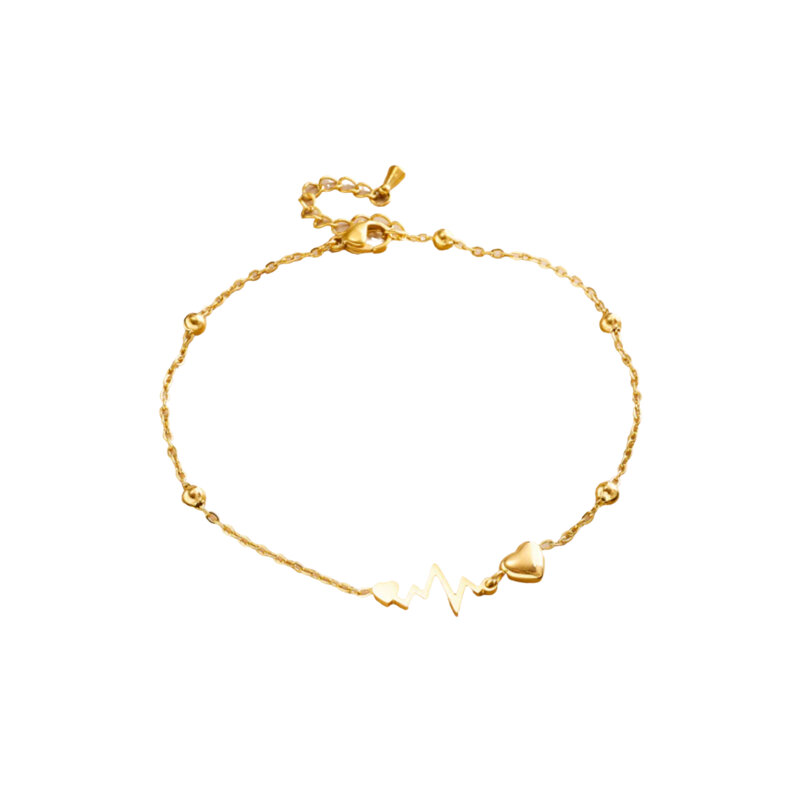 Questa cavigliera da donna con ciondolo a cuore, realizzata in acciaio al titanio, unisce stile e resistenza in un accessorio perfetto per completare ogni look.